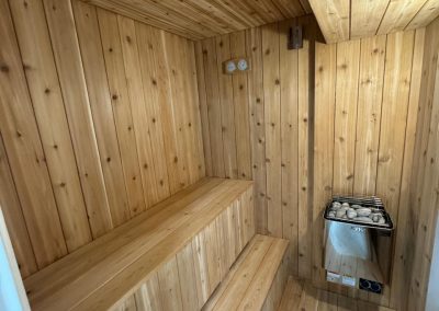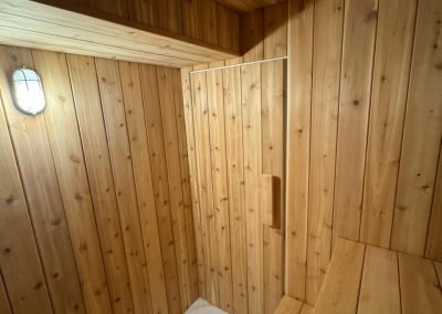 Custom home sauna design featuring natural wood finishes and a clean, modern layout. This project focused on comfort, heat efficiency, and craftsmanship to create a relaxing sauna space suitable for everyday home use.